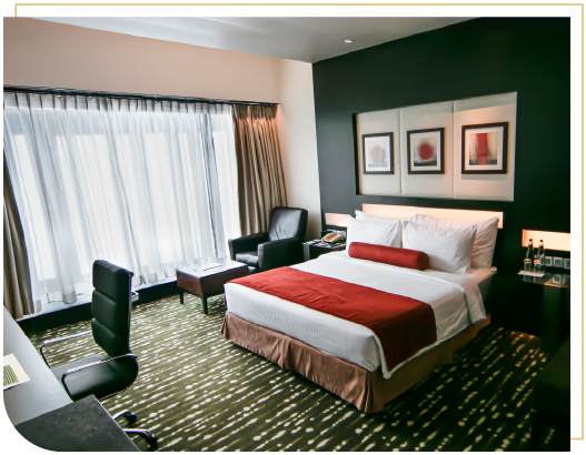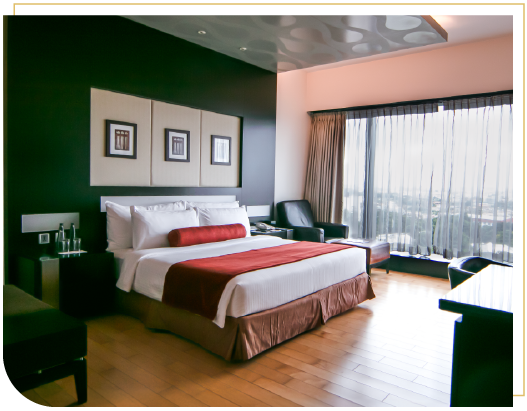 Work from the comfort of your cosy room with a modern workspace and high-speed wireless internet. The space is filled with warm and inviting lighting which elevates the ambience. The expansive window fills the room with the warmth of morning light and you can choose a view of the dynamic cityscapes of the Electronic City or the refreshing sight of the pool shimmering under the sun.